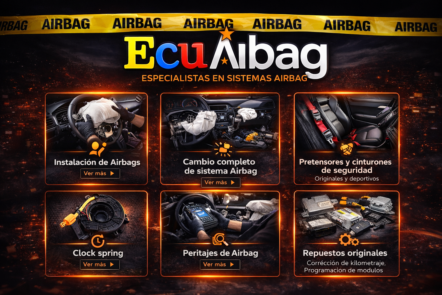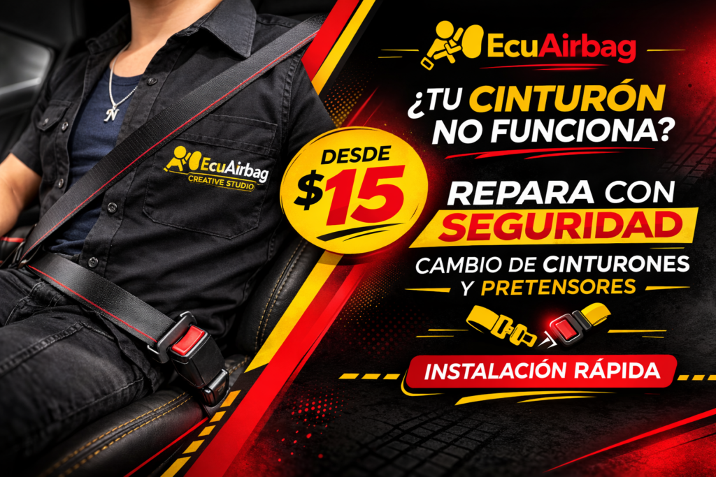 Tu vehículo merece un sistema de seguridad que funcione correctamente en el momento más importante. En EcuAirbag somos especialistas en diagnóstico, reparación e instalación de sistemas airbag, cinturones de seguridad, pretensores, cintas clock spring y kits completos.