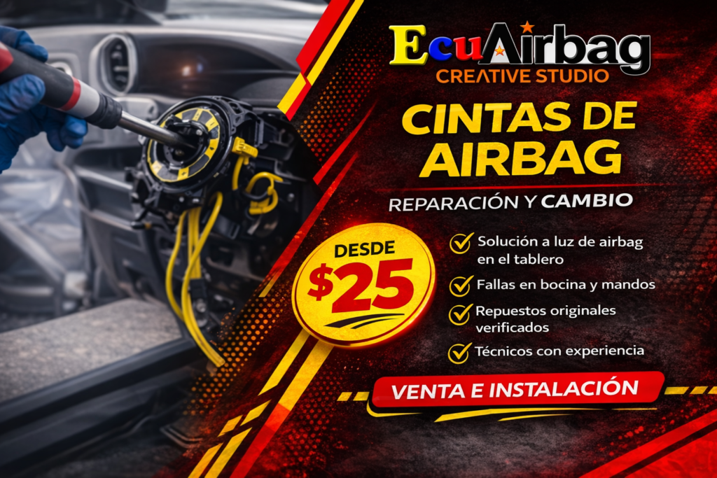 En EcuAirbag somos especialistas en reparación de airbag en Ecuador, diagnóstico electrónico y venta de componentes para sistemas de seguridad automotriz. Contamos con experiencia técnica comprobada en módulos airbag, pretensores, cinturones de seguridad y sistemas completos. Si tu vehículo sufrió una colisión o tiene la luz de airbag encendida en el tablero, realizamos diagnóstico profesional y solución técnica garantizada.