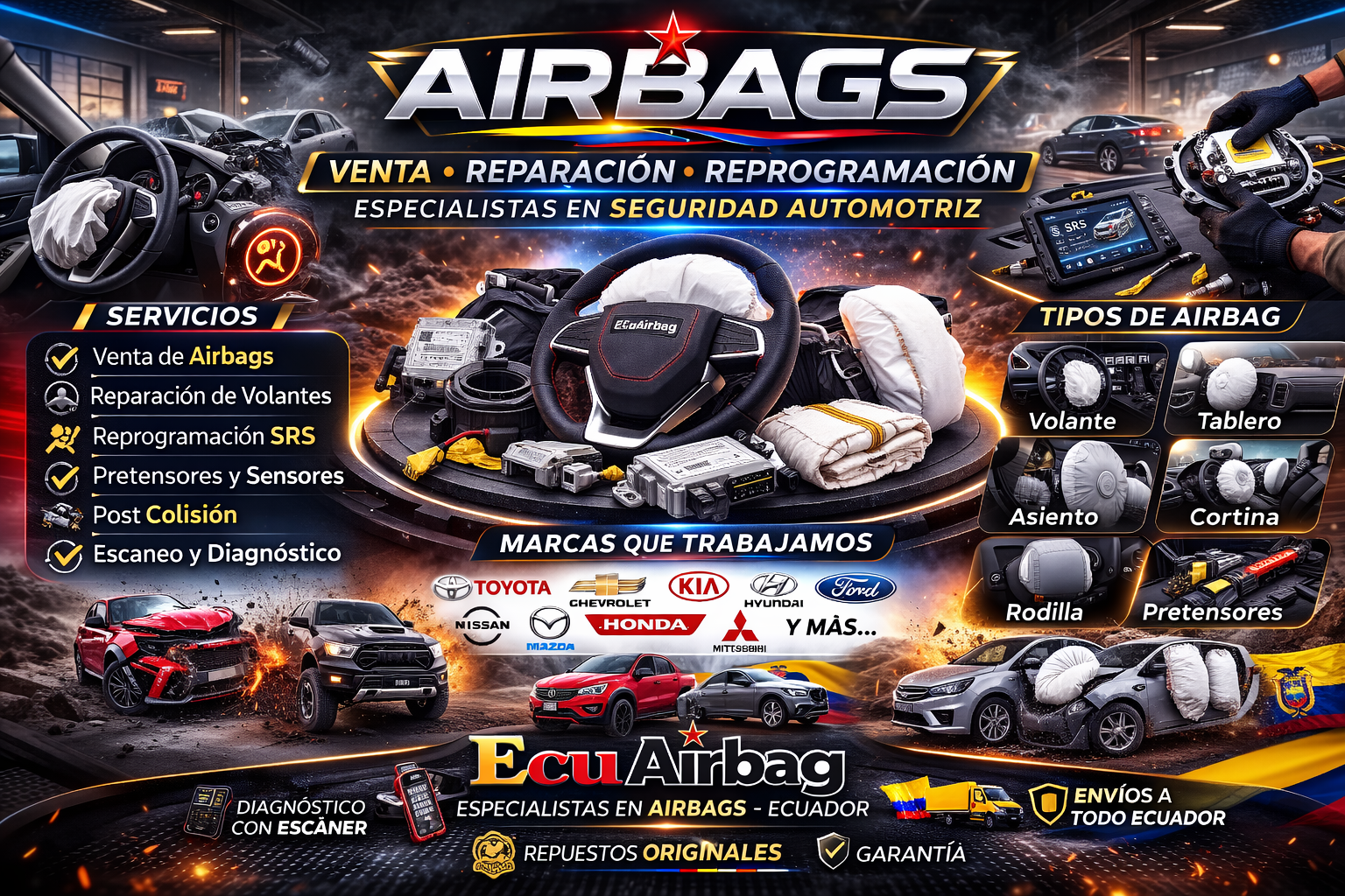 En EcuAirbag somos especialistas en venta, diagn贸stico y reparaci贸n de airbags en Ecuador. Trabajamos con sistemas de seguridad automotriz para diferentes marcas y modelos, garantizando compatibilidad, instalaci贸n profesional y funcionamiento correcto del sistema SRS.