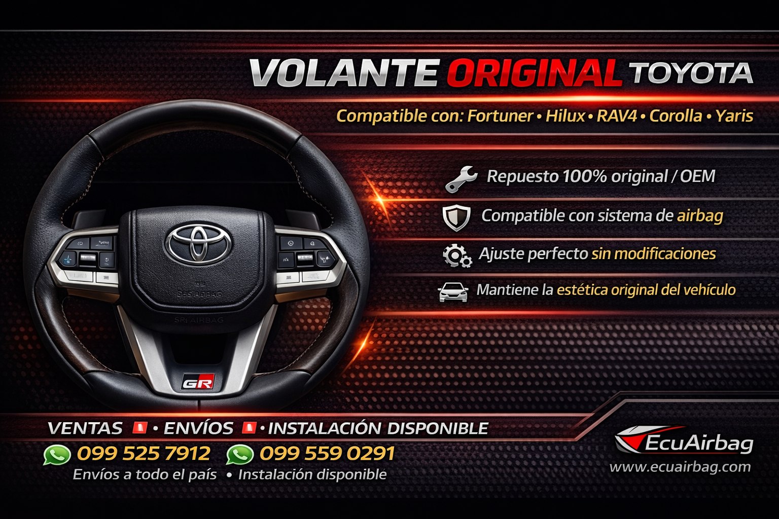 En EcuAirbag contamos con volantes originales multimarca compatibles con sistema de airbag y listos para instalación inmediata.